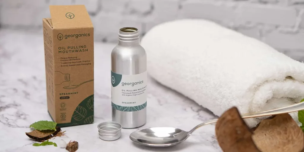 - Las mezclas de Georganics están hechas a base de aceite de coco ecológico e incorporan otros ingredientes como el carbón activado, el aceite esencial de árbol de té o el aceite esencial de menta que le añaden propiedades extra y potencian los beneficios del enjuague bucal. Además vienen en envases de aluminio, un material reciclable al infinito, ligero y resistente.