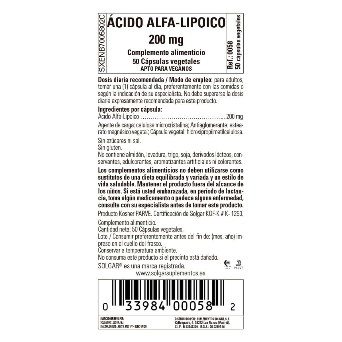 Ácido alfa-lipoico …………….200 mg