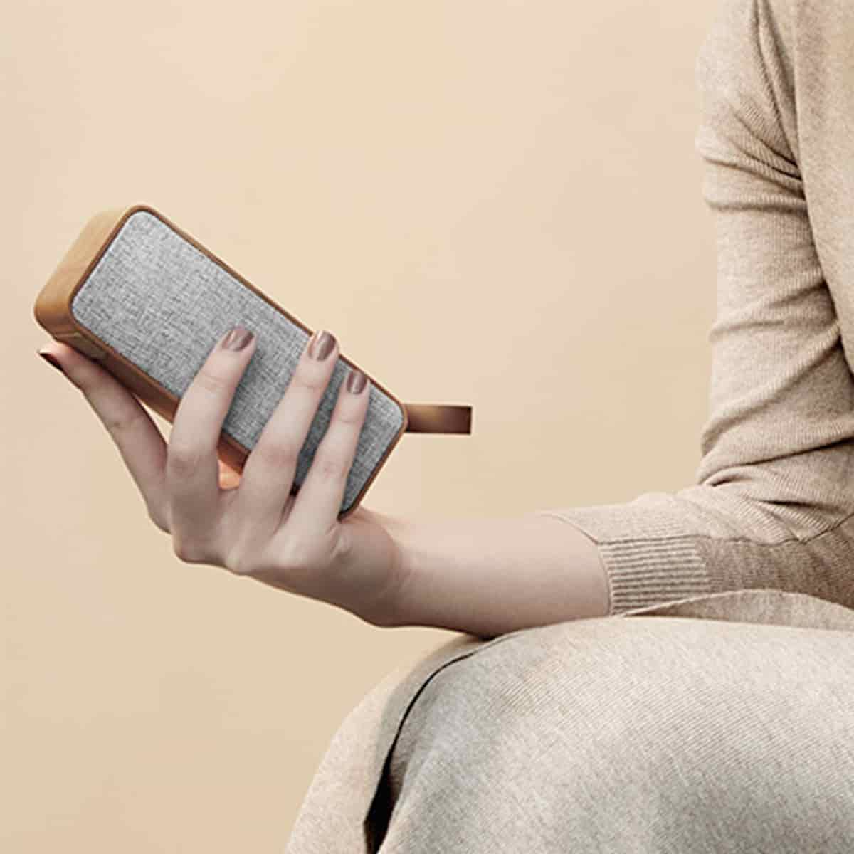 Tecnología y naturaleza se dan la mano en este altavoz portátil estéreo. Está fabricado en madera de haya natural y tela orgánica, materiales que brindan un acabado más duradero y sonido de mayor calidad.