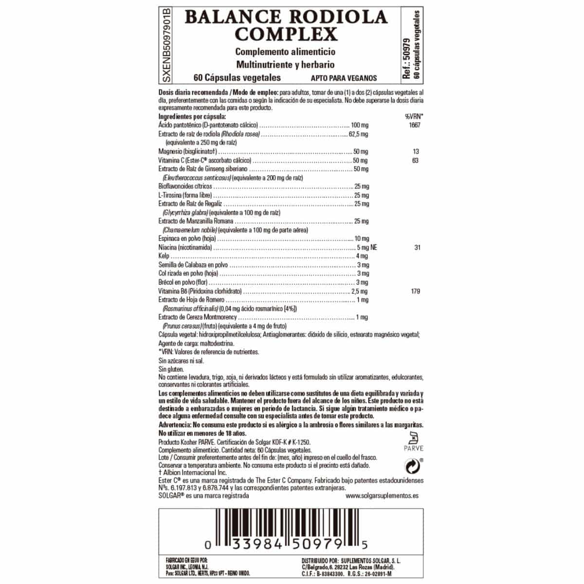 Extracto de raíz de rodiola (Rhodiola rosea) (equivalente a 250 mg de raíz)..62,5 mg
