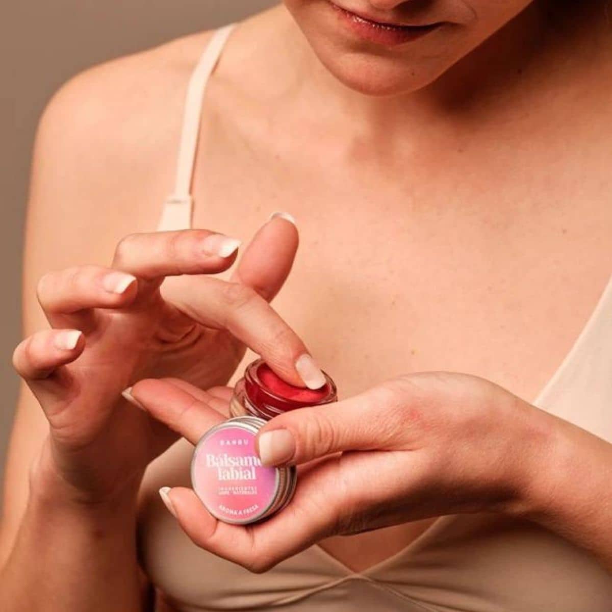Aplicar el bálsamo con ayuda de la yema de los dedos, su textura se funde con gran rapidez sobre los labios.