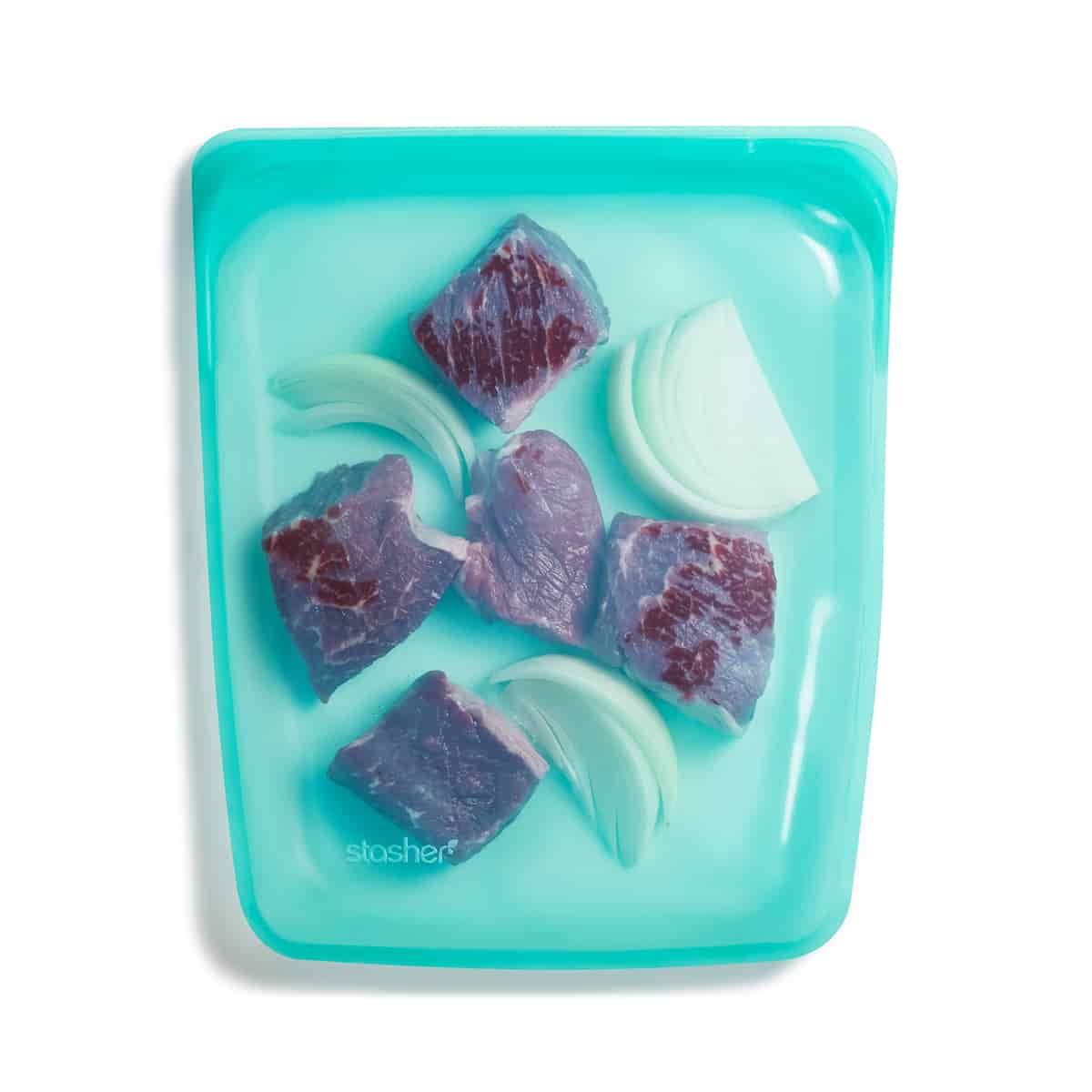 Debido a que no se utilizan selladores tóxicos para Stasher, la silicona a veces puede mancharse con ciertos alimentos. Puedes evitarlo limpiando inmediatamente después de usar la bolsa.