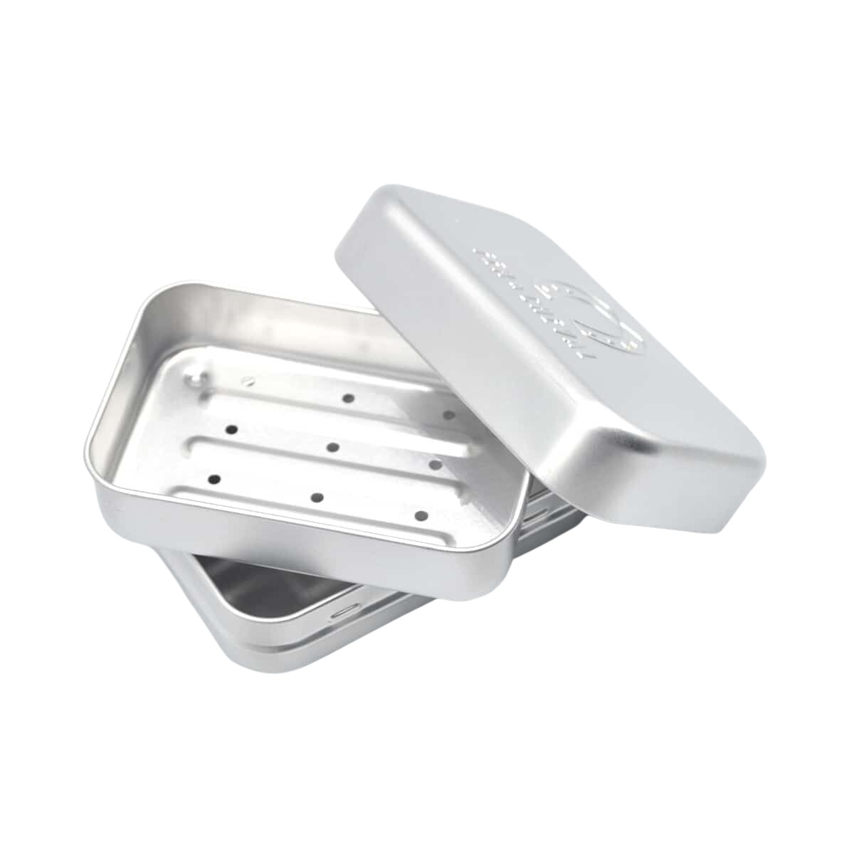 Esta cajita fabricada en 100 % aluminio es ideal para transportar tu jabón sólido cuando vas de viaje. Úsala para almacenar el jabón en tu neceser, pero también como jabonera de lavabo. Se compone, de hecho, de tres partes: la tapa, el fondo y el escurridor.