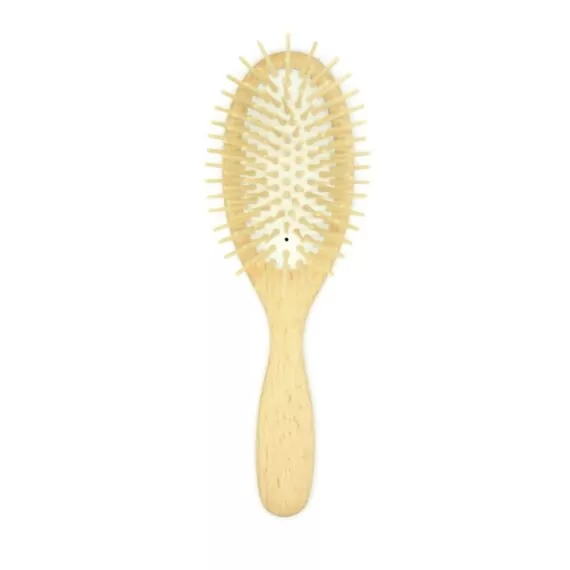 - Las púas de madera cuidan del cabello a la vez que realizan un agradable masaje en el cuero cabelludo.