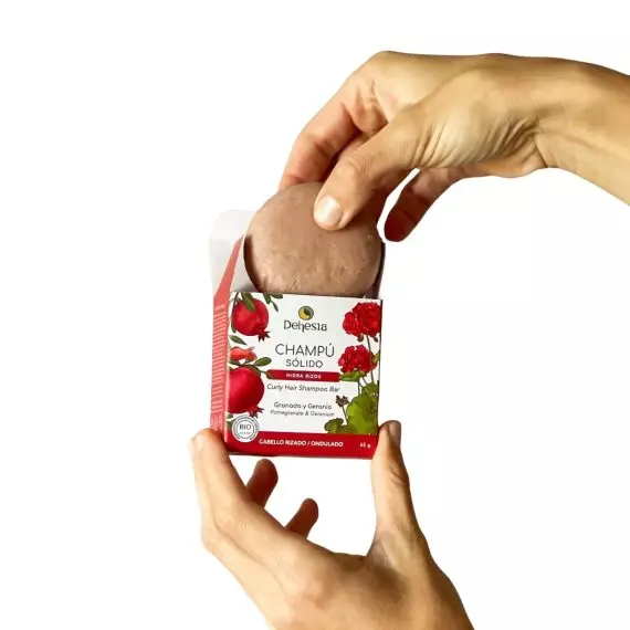 Mojar el cabello y frotar la pastilla en la parte superior de la cabeza y contorno del cabello hasta conseguir espuma.