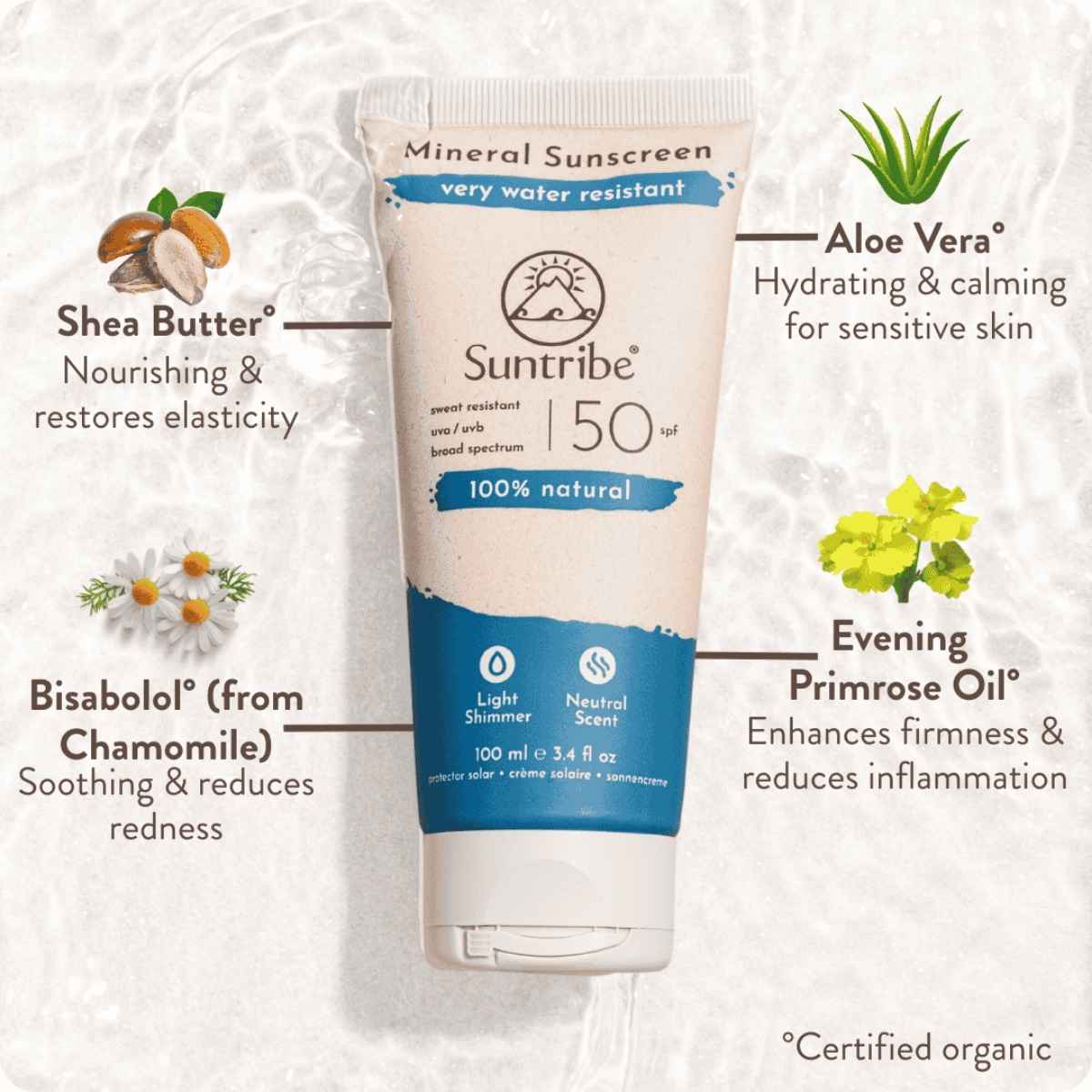 Esta alternativa no solo es efectiva contra los rayos UV, sino también segura para la vida marina, ya que no se disuelve ni reacciona en el agua. De hecho, los protectores solares de Suntribe han sido certificados como ‘’seguros para Arrecifes’’ por el Hawaiian Safe Sunscreen Council.