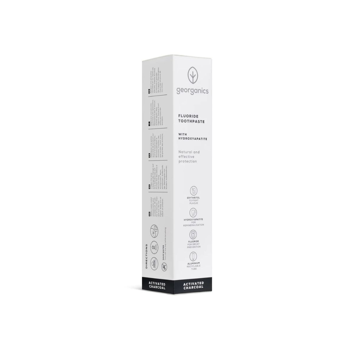 Este dentífrico combina lo mejor de la ciencia dental moderna con ingredientes naturales de alta calidad para ofrecerte un cuidado bucal avanzado. Formulado con hidroxiapatita, un mineral muy similar al componente natural del esmalte dental que contribuye a remineralizar y reforzar los dientes, junto con flúor clínicamente probado para ayudar a prevenir caries, y carbón activo para una limpieza profunda y eliminación de manchas superficiales.