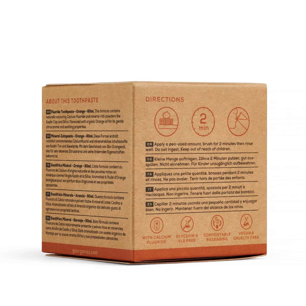 Carbonato de calcio^, triglicérido caprílico/cáprico*^, caolín^, tierra de diatomeas^, bicarbonato de sodio^, aceite de cáscara de Citrus Aurantium Dulcis*^, manteca de semillas de Theobroma Cacao*^, manteca de Butyrospermum Parkii*^, xilitol^, tocoferol^, calcio fluoruro, limoneno.
