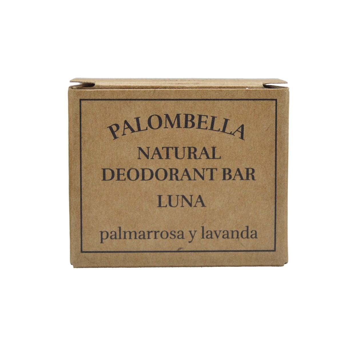 Este desodorante sólido con ingredientes ecológicos viene en una caja de cartón procedente de bosques sostenibles.