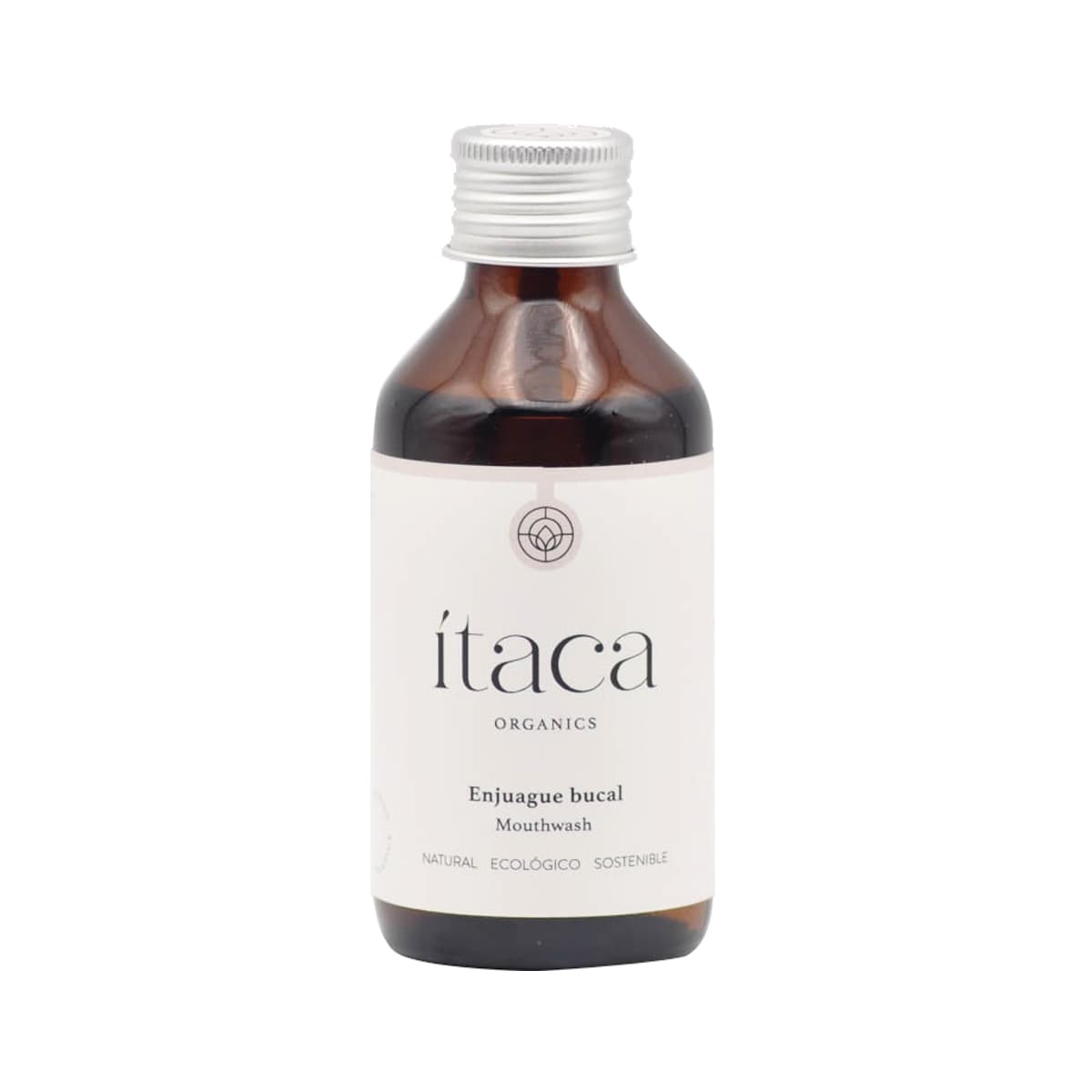 El aceite bucal se presenta en un frasco de vidrio oscuro con tapa de aluminio que contiene una pequeña protección sintética adherida. Ambos materiales son reciclables y reutilizables.