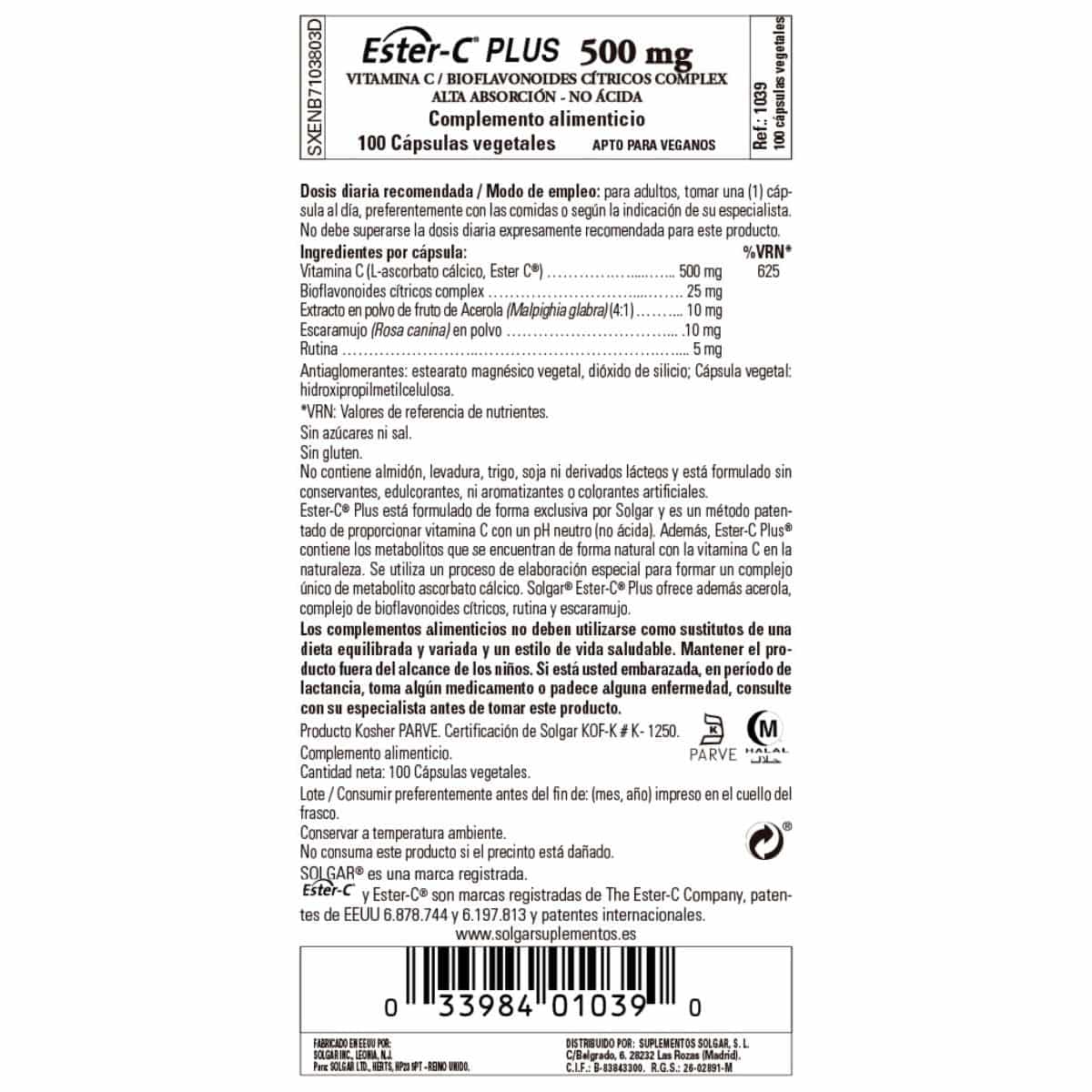 Vitamina C (Ester C®, ascorbato cálcico)…..500 mg