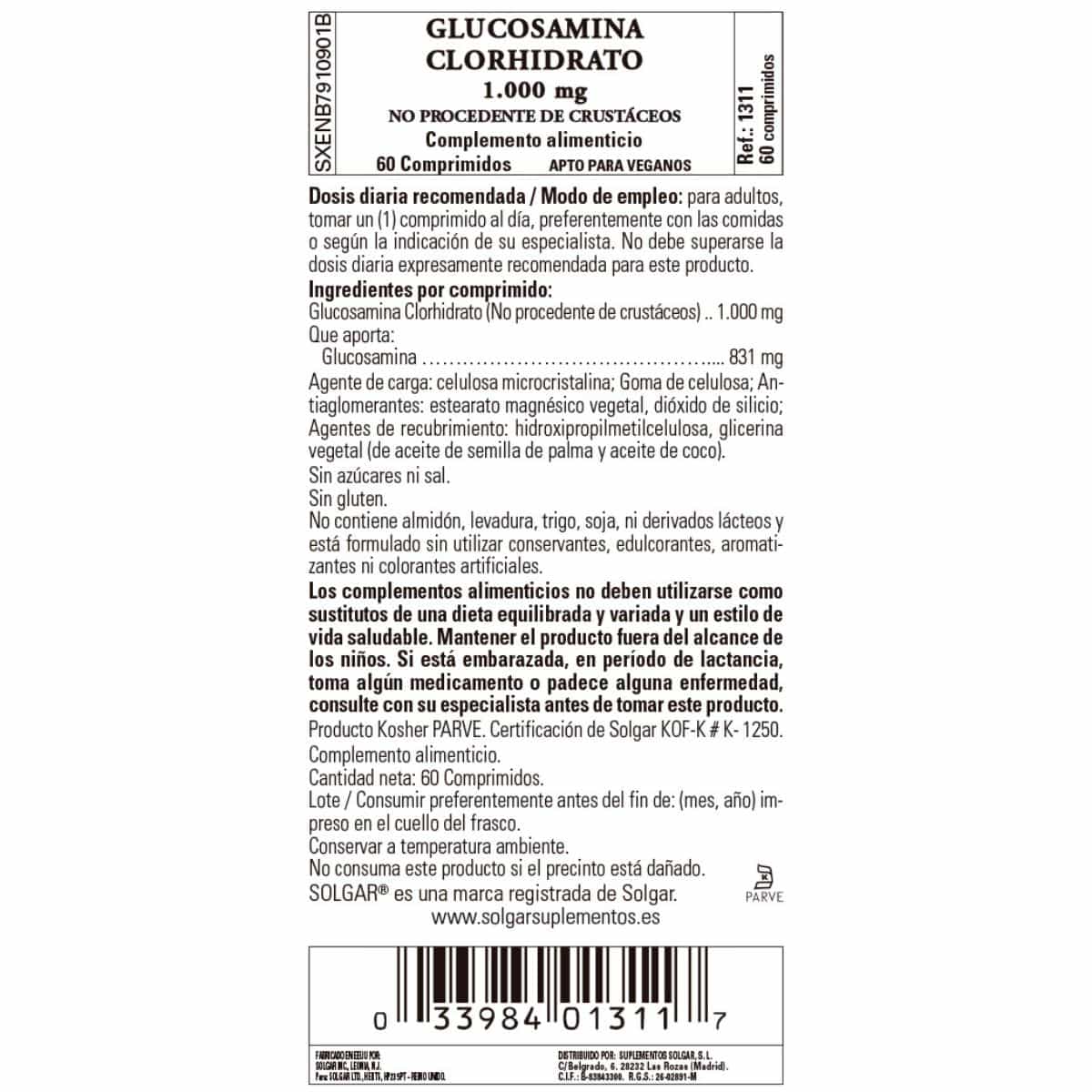 Glucosamina hidrocloruro sin crustáceos (que aporta 831 mg de glucosamina)..1000 mg