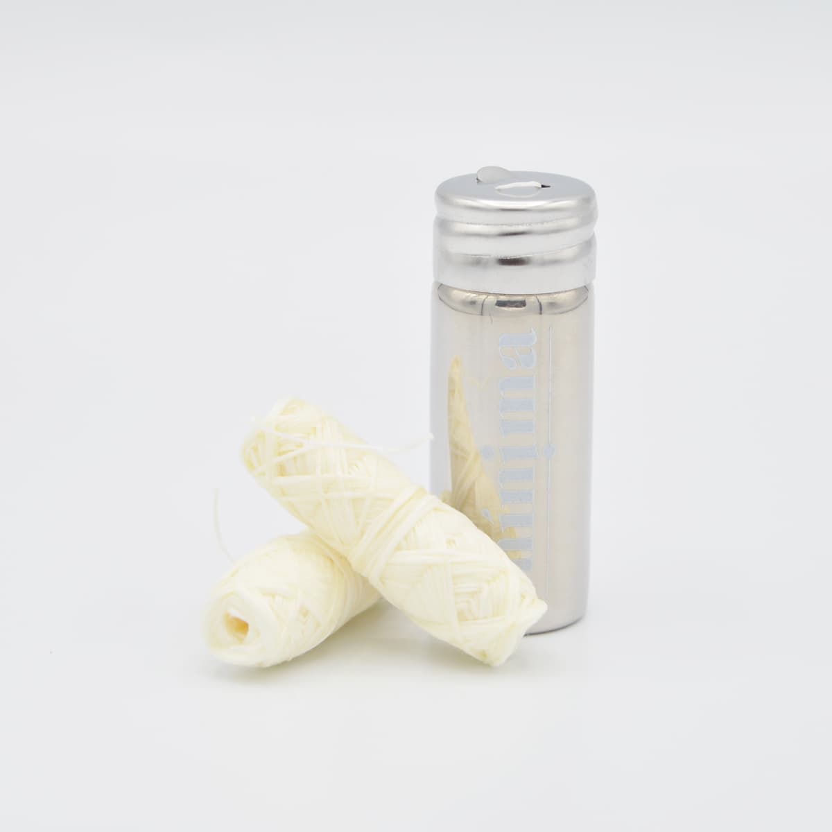 - Abre el frasco de acero inoxidable y tira suavemente del hilo hasta obtener aproximadamente 30 centímetros de longitud.