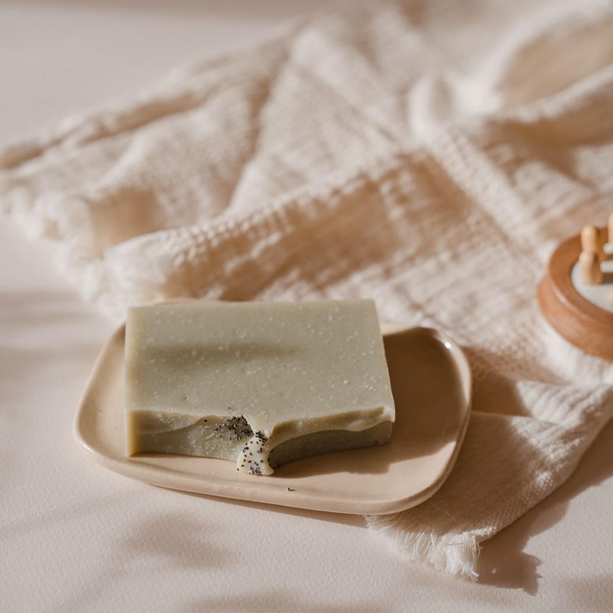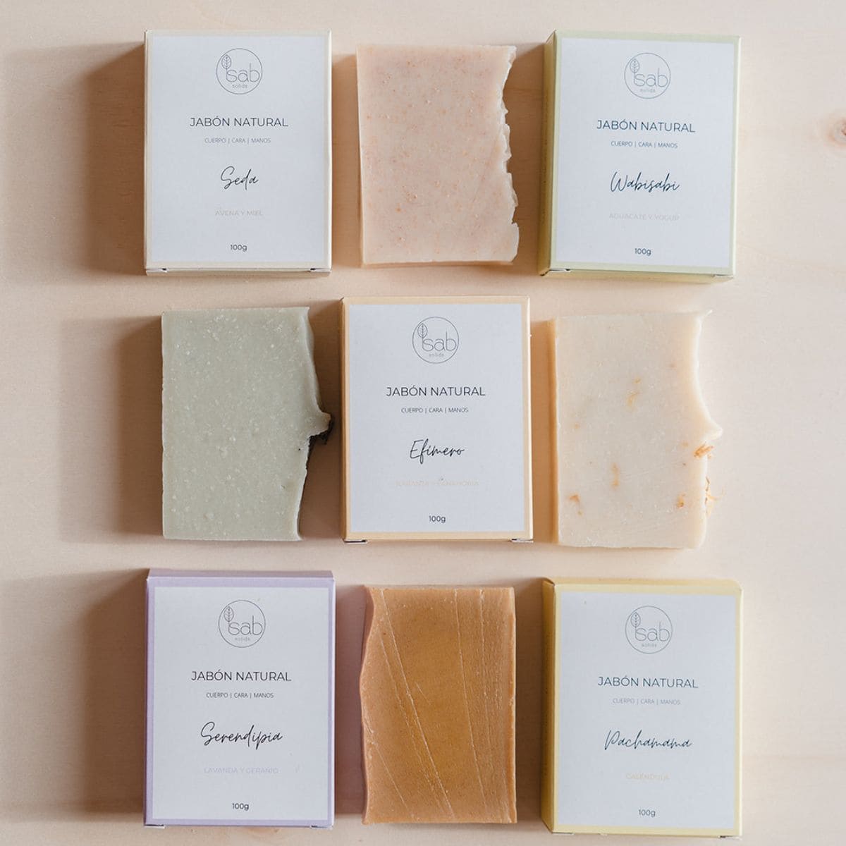 La pastilla de jabón se presenta en una caja de cartón reciclable.