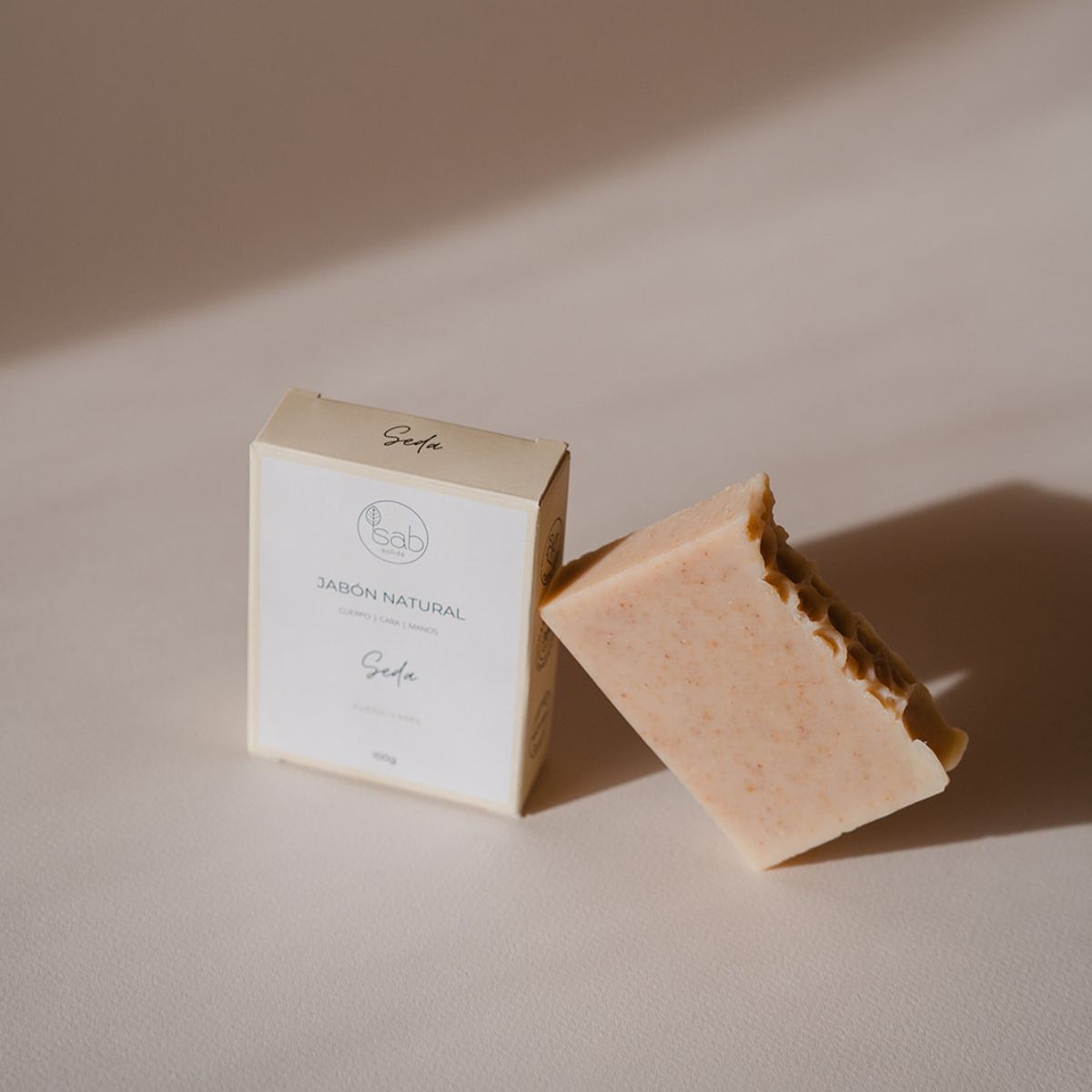 La pastilla de jabón se presenta en una caja de cartón reciclable.