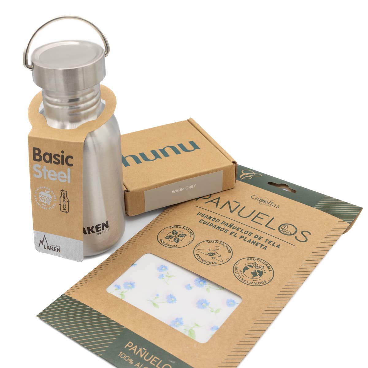 Este kit eco-friendly te ofrece todo lo necesario para mantener tu hidratación y comodidad en cualquier lugar y momento. Incluye una botella de acero inoxidable de 500 ml, un vaso plegable y un pack de 3 pañuelos.
