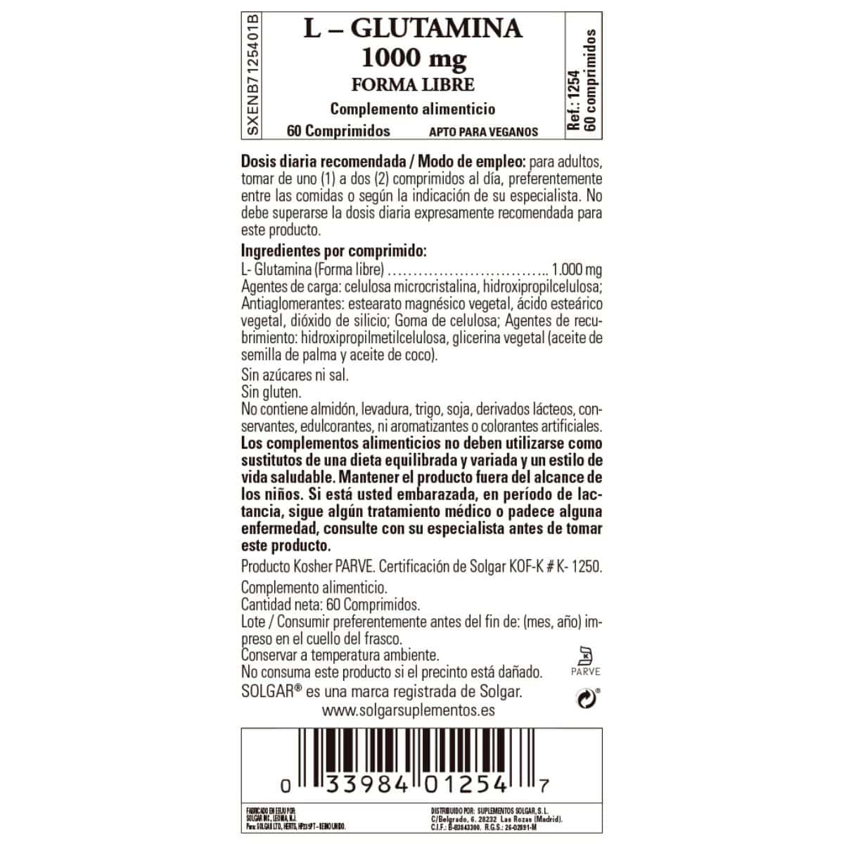 L-glutamina (forma libre)…… 1000 mg