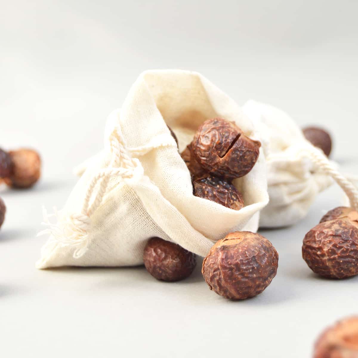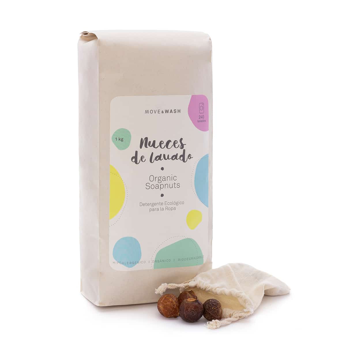 Las nueces de lavado son los frutos del árbol Sapindus Mukorossi y es una de las alternativas más ecológicas a los detergentes convencionales. Contienen saponina, una sustancia tensioactiva naturalmente presente en las nueces que se activa con agua a partir de 30º y que actúa igual que los jabones convencionales. Además, los residuos de saponina crean una barrera protectora sobre el tejido que permiten prescindir del uso de suavizante. Es un detergente hipoalergénico y biodegradable ideal para las prendas delicadas como la lana y la seda y para la ropa de bebé. También se pueden hervir para crear distintas preparaciones de detergentes líquidos.