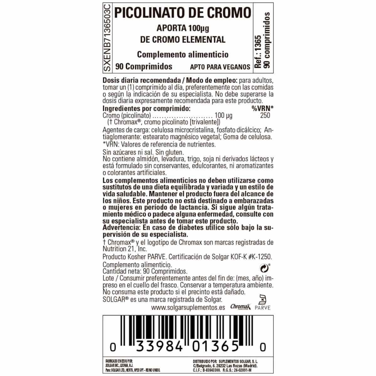 Cromo (Chromax, cromo picolinato [trivalente])…. 100 µg