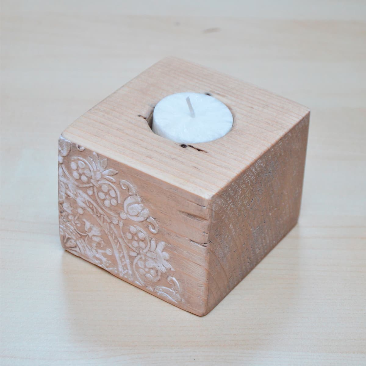 La fundación Pere Mitjans es una entidad sin ánimo de lucro que ofrece servicios de soporte a personas con discapacidad física, intelectual y sensorial. La fundación está constituida por un núcleo de residencias, centros de atención diurnos, servicios de terapia ocupacional y centros especiales de trabajo. Entre todas sus instalaciones dan soporte a unas 200 personas. En uno de sus centros de terapia ocupacional es donde realizan productos de madera de manera artesanal. Toda la madera es recuperada de distintas fuentes a la que se le da una segunda vida. En este caso, los portavelas están hecho a partir de palets recuperados. Los productos realizados en este centro permiten desarrollar las habilidades físicas, creativas y emocionales de las personas que las hacen.