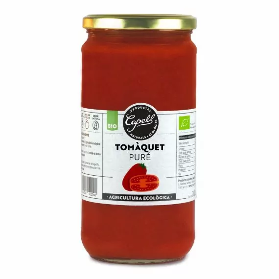 Tomate triturado y concentrado a baja temperatura. Cunde mucho más que otras conservas porque está concentrada casi al doble y contiene más tomate y menos agua. Es un tomate ecológico de calidad y sin aditivos.