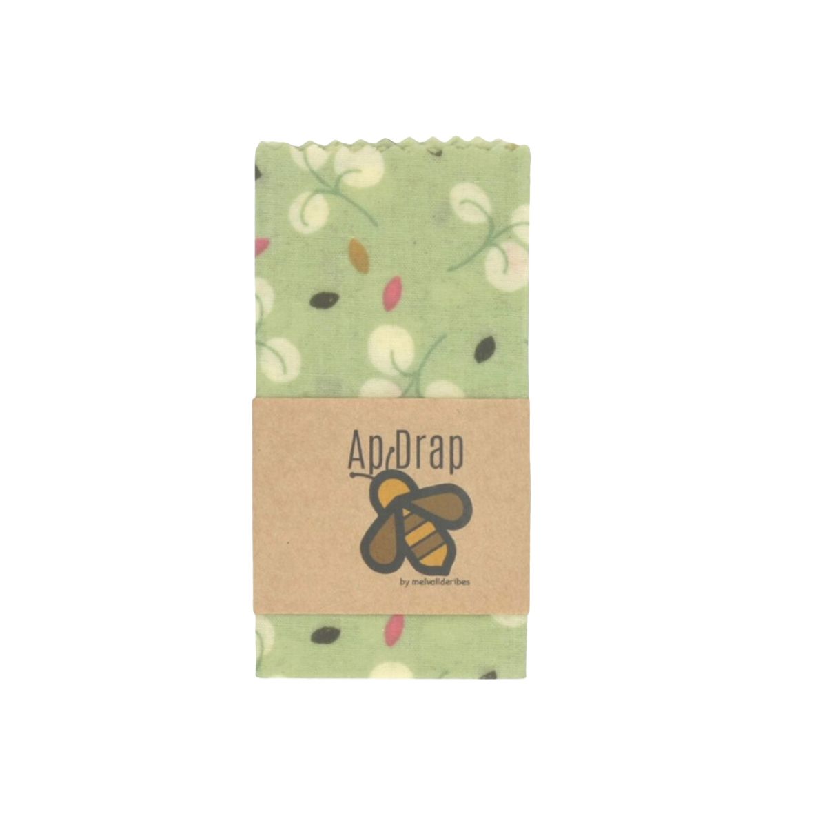 El wrap está elaborado a partir de una mezcla de cera de abejas, aceite de almendras y aceite de pino. Esta combinación de ingredientes de la parte impermeable lo convierte en un envoltorio que puedes moldear con las manos fácilmente. La otra cara del wrap está confeccionada con algodón orgánico estampada con tintes ecológicos. No sólo es muy práctico, sino también ¡muy bonito!